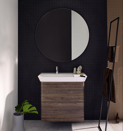 Badmöbel in Holzoptik und in Matt, Badarmaturen in Schwarz, begehbare Dusche, freistehende Wanne, Badkeramik mit Funktion, Nachhaltigkeit - Das und noch einiges mehr sind die Bad Trends für 2025.