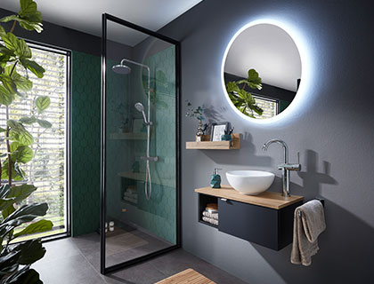 Badarmaturen in schwarzen Farbtönen setzen Akzente