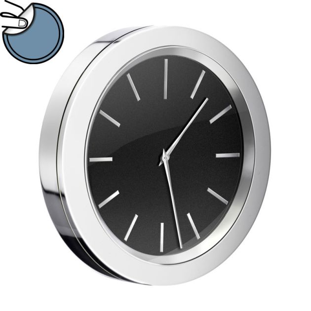 Badezimmeruhr mit schwarzem Zifferblatt, Chrom poliert, selbstklebend, in schwarzer Geschenkbox